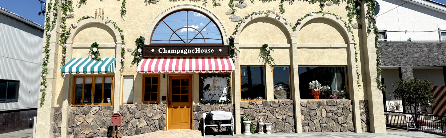 シャンパンハウス 〒442-0844 愛知県豊川市小田渕町四丁目73番地 TEL.090-1973-0305 定休日:火曜・木曜 ※3/12(木)は営業 営業時間:11:00~18:00 時間 月 火 水 木 金 土 日 11:00 ~ 18:00 〇 ー 〇 ー 〇 〇 〇 ショップギャラリー